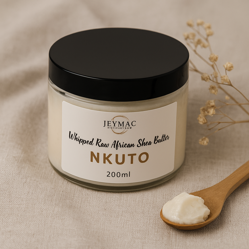 Soft, pure, and powerful. Nkuto is 100% raw, unrefined African Shea Butter whipped to perfection for a smooth, luxurious feel. Rich in vitamins and fatty acids, it deeply moisturises, softens dry skin, fades stretch marks, evens skin tone, and supports natural collagen production. Unscented and gentle, it’s perfect for all skin types — face, body, even dry scalp.